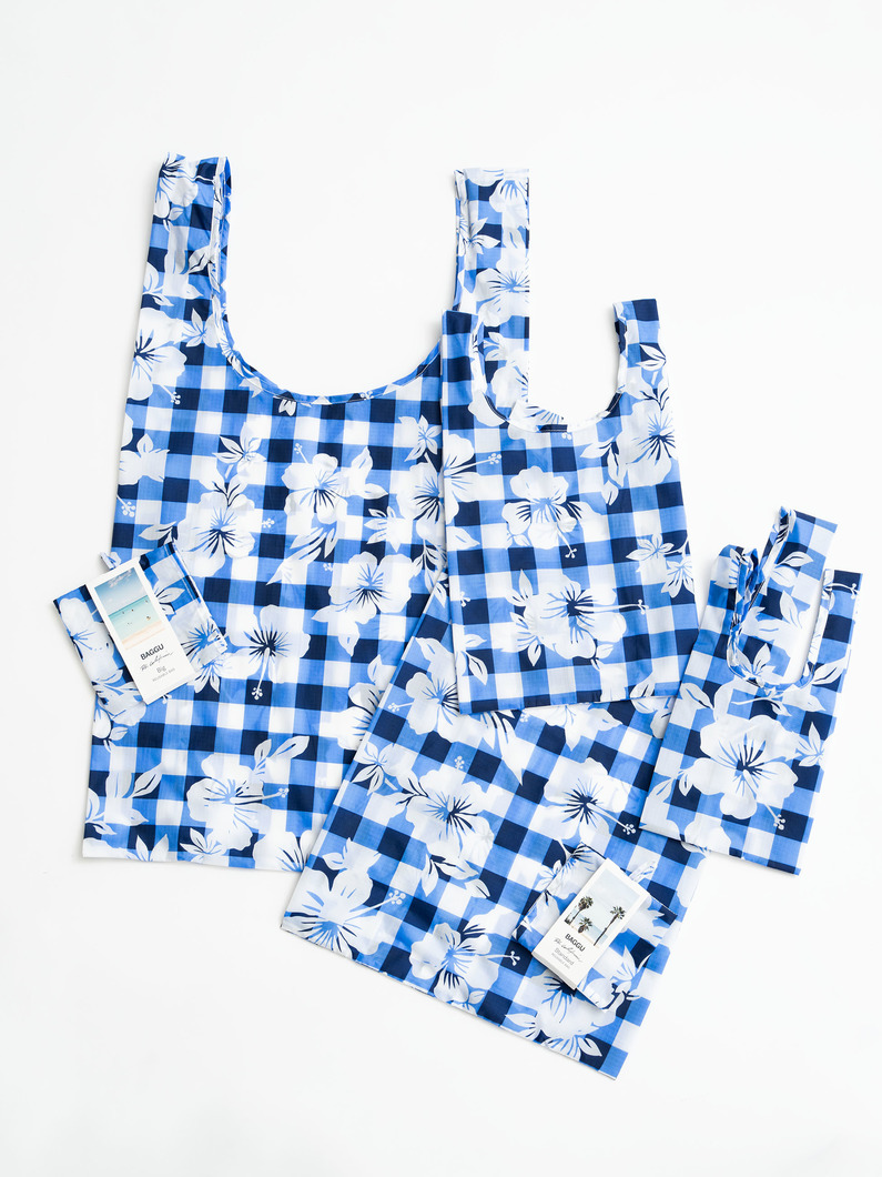 毎シーズンご好評いただいているBAGGU別注シリーズに、ハイビスカス×チェックの爽やかな新作が登場。程よく目を引きながらも、デイリーに使いやすい絶妙なバランスが魅力です。軽装になるこれからの季節にぴったりなブルーカラーは、旅行やビーチなど夏のシーンでも活躍間違いなし!