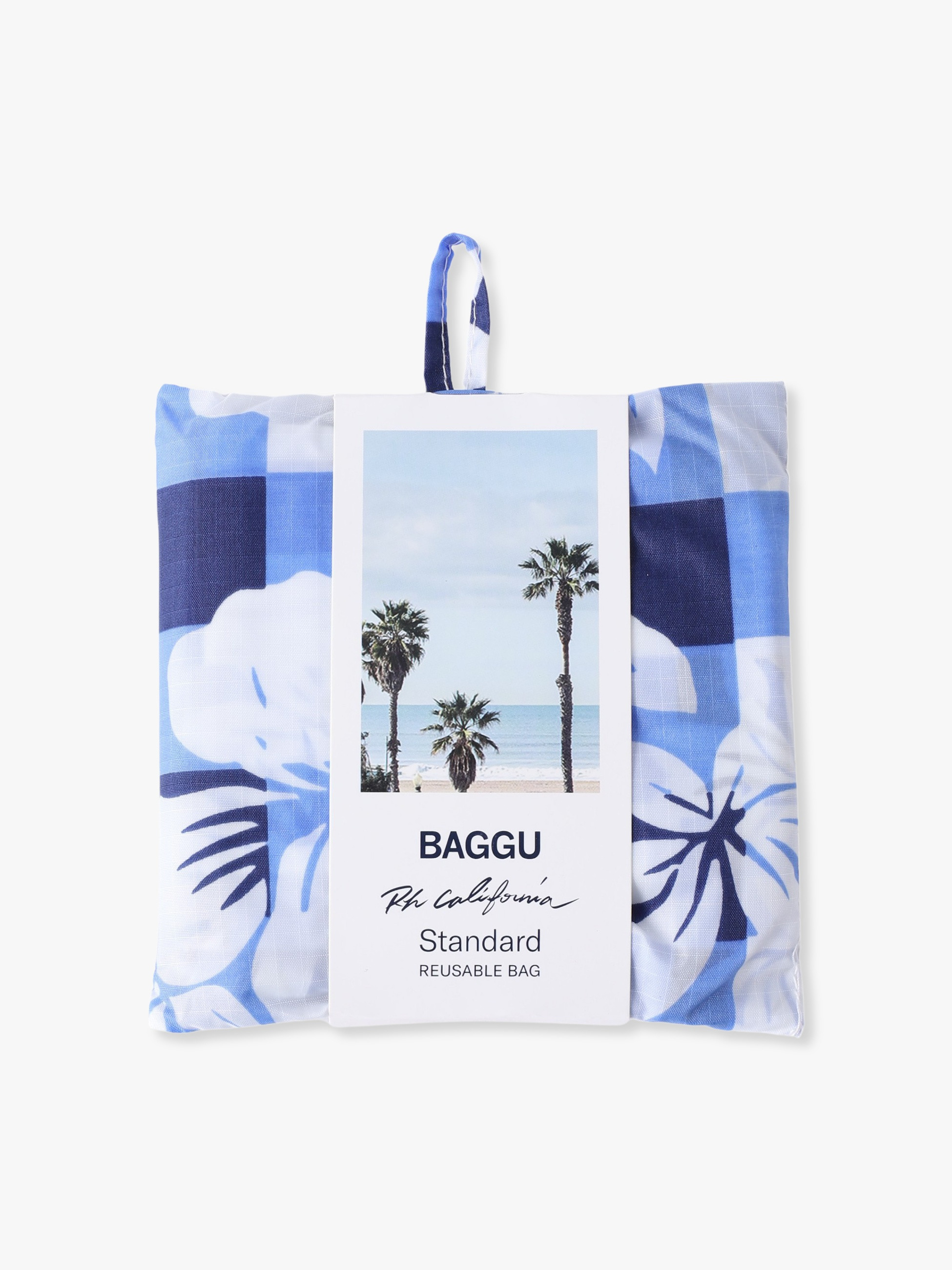 - 毎シーズンご好評いただいているBAGGUとロンハーマンのコラボレーションより、今季はハイビスカス柄とチェック柄をミックスした、オリジナルデザインをご用意しました。ブランドカラーであるネイビーを軸に、ブルー系の爽やかな配色が、軽やかな夏の装いに自然となじみます。使い勝手の異なる4サイズ展開で、シーンに合わせたスタイリングを楽しめるのも魅力。スリーブには、時間帯ごとのビーチ風景を描いたグラフィックを採用し、開封時から心躍る仕上がりに。夏のアクセントになる柄小物としてはもちろん、ギフトにもおすすめです。