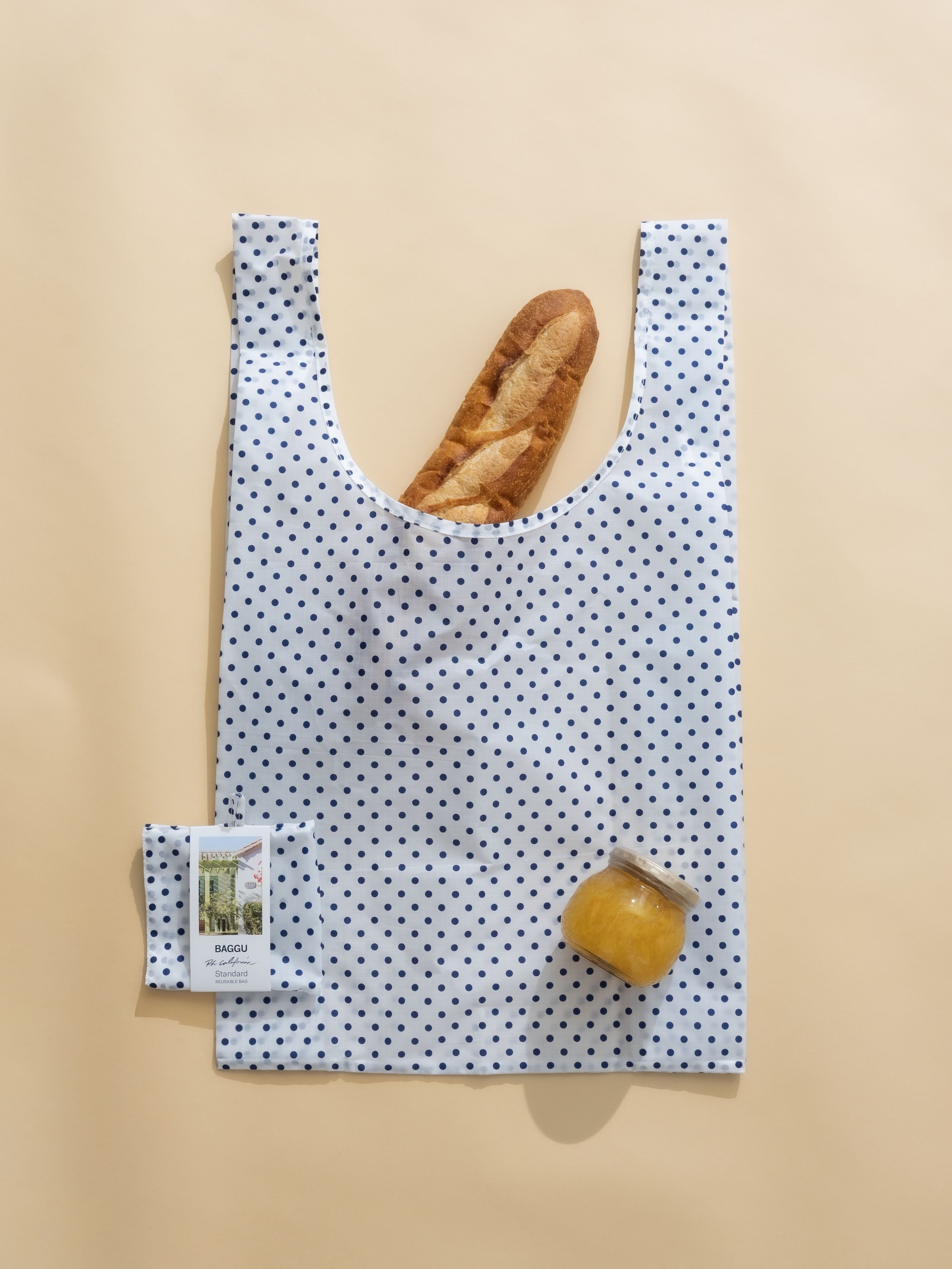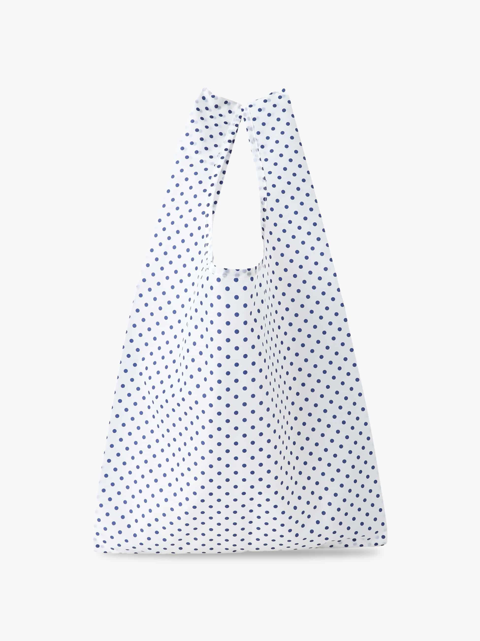 毎シーズンご好評いただいているBAGGUとロンハーマンのコラボレーションより、新シリーズが登場です。ドットの間隔やバランスにこだわったオリジナルデザインに仕上げました。ホワイトベースにネイビーのドットを効かせた爽やかなデザインが魅力で、スタンダードサイズは、日常のお買い物やお出かけなど幅広いシーンで活躍し、ギフトとしてもおすすめできます。