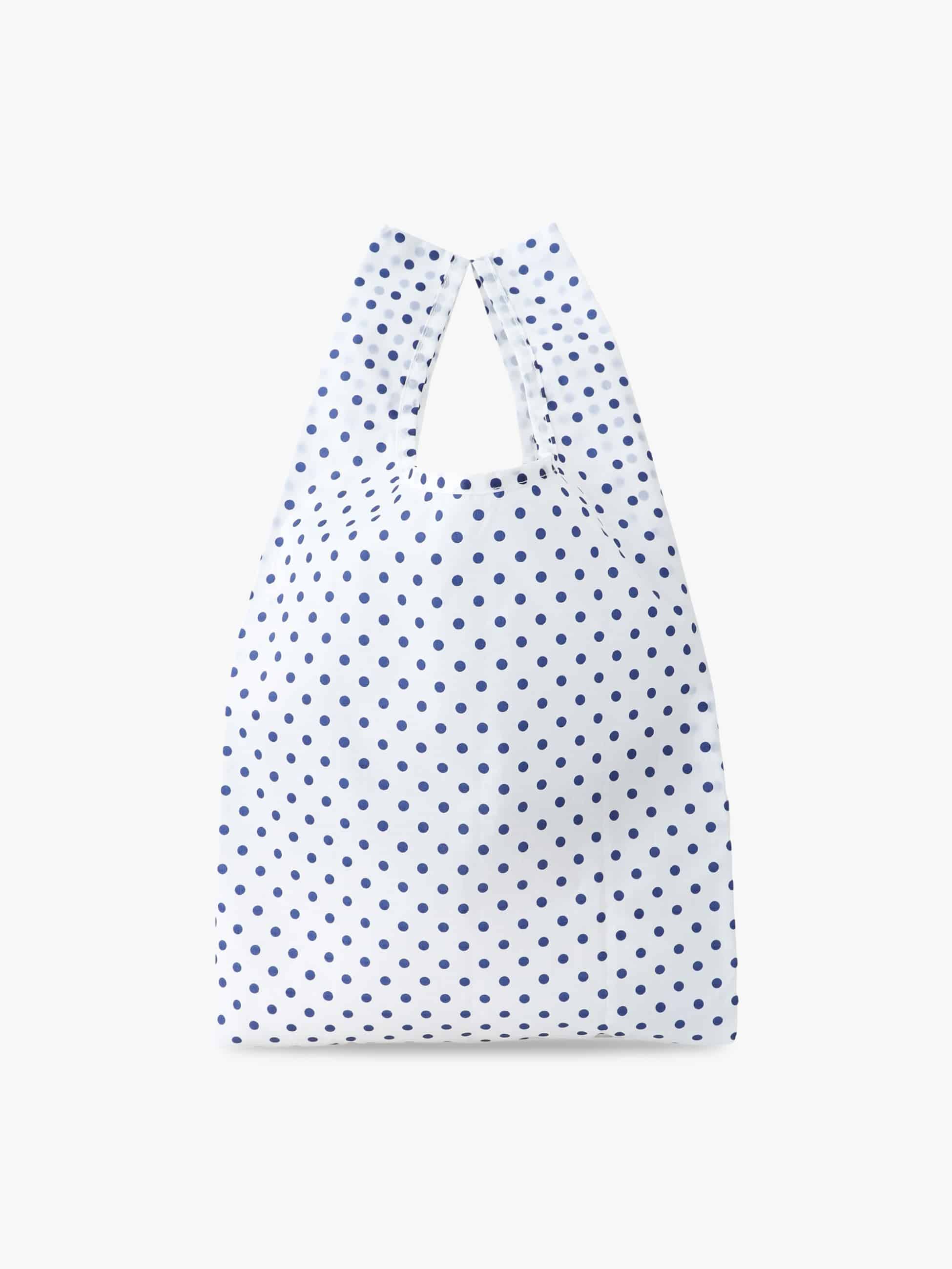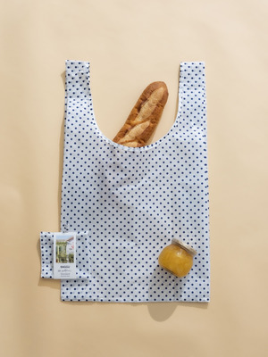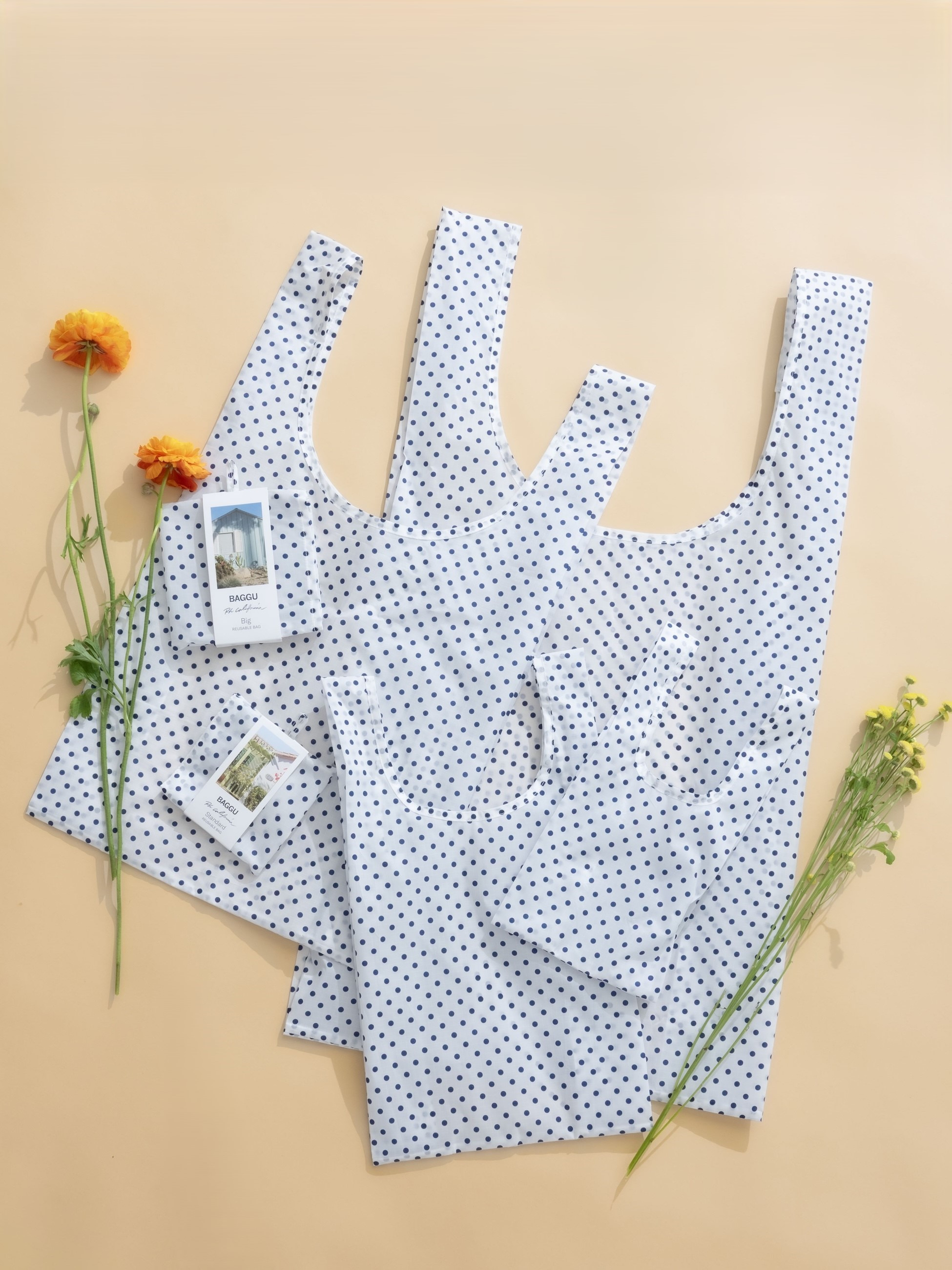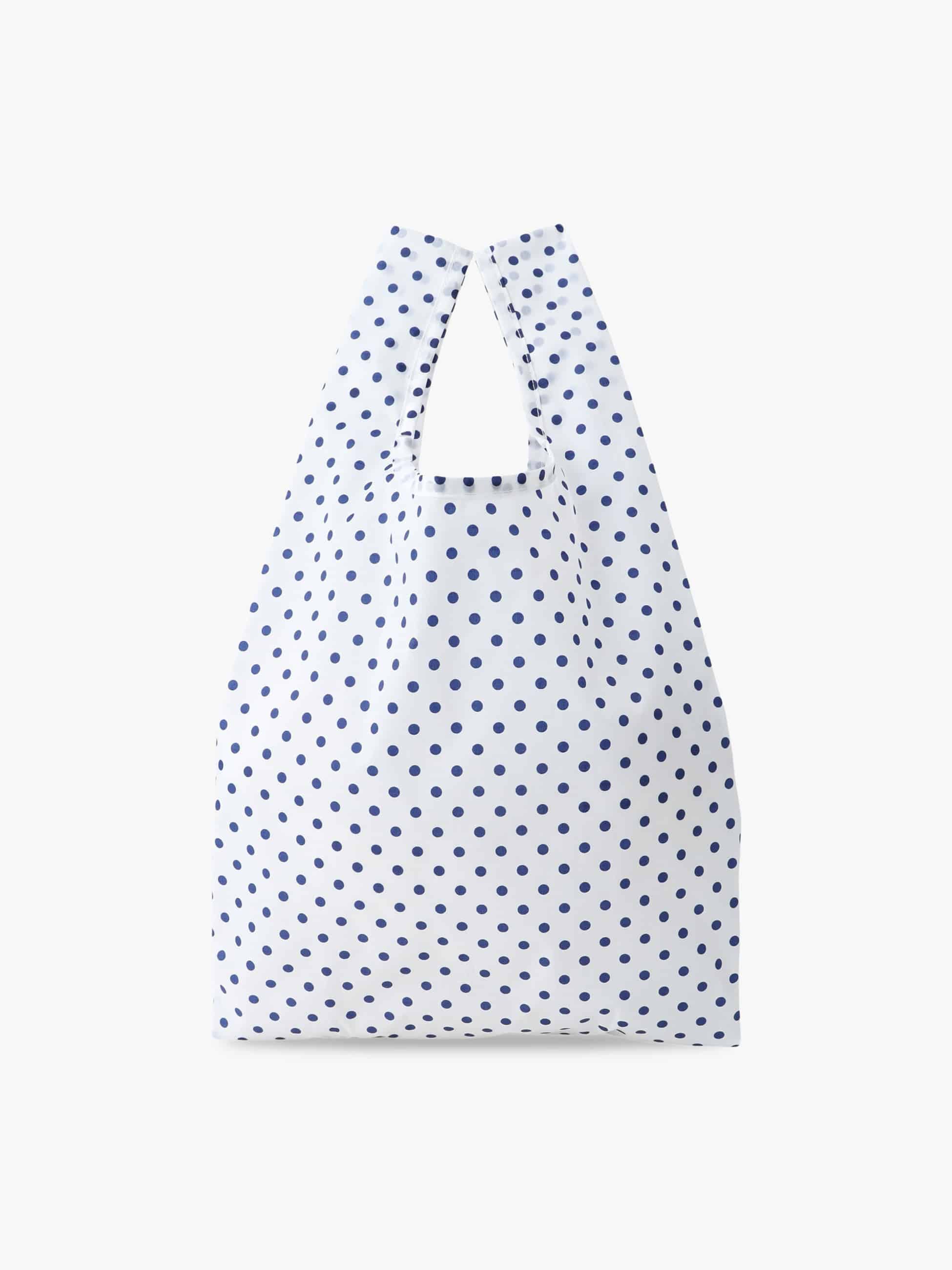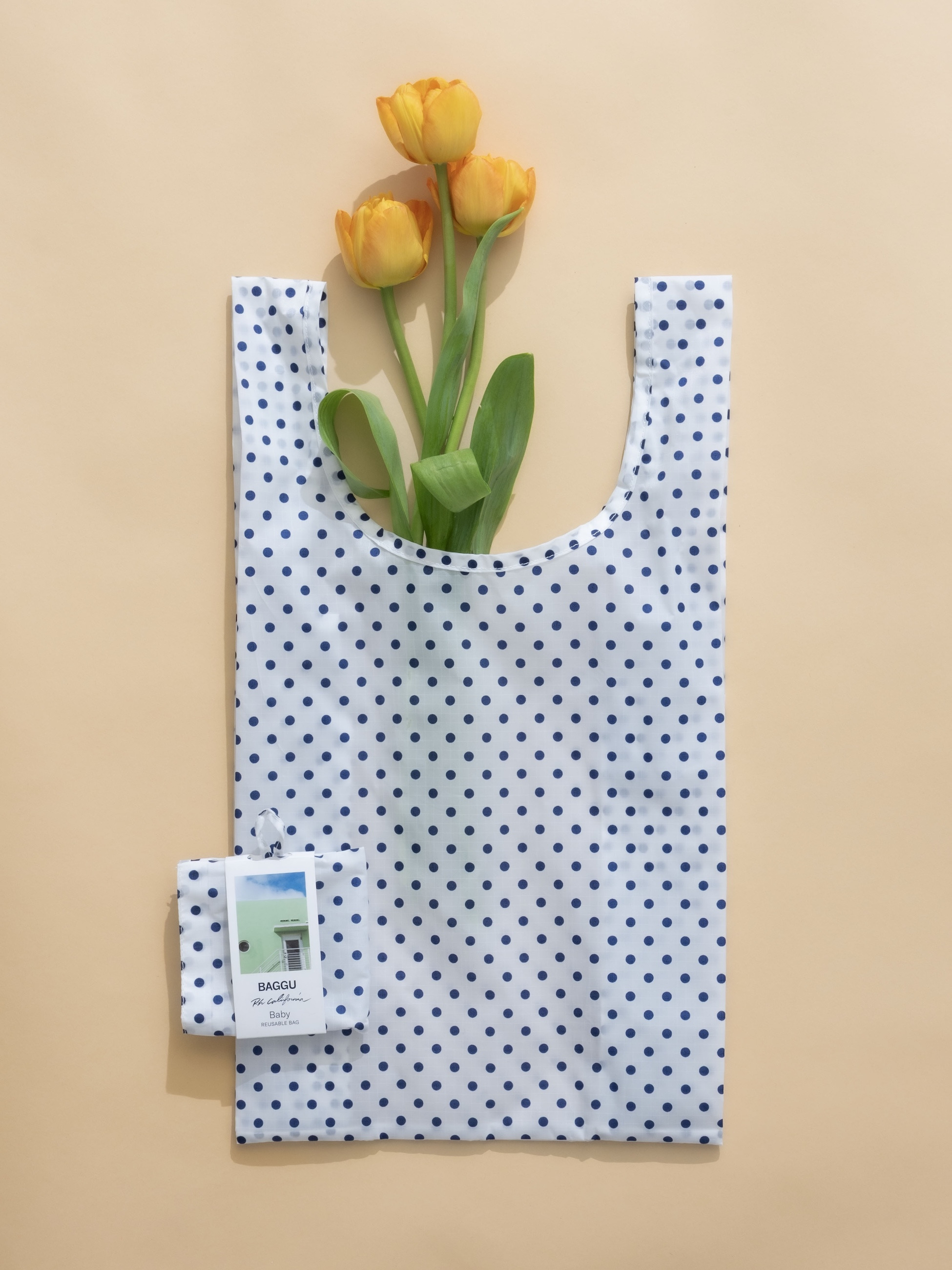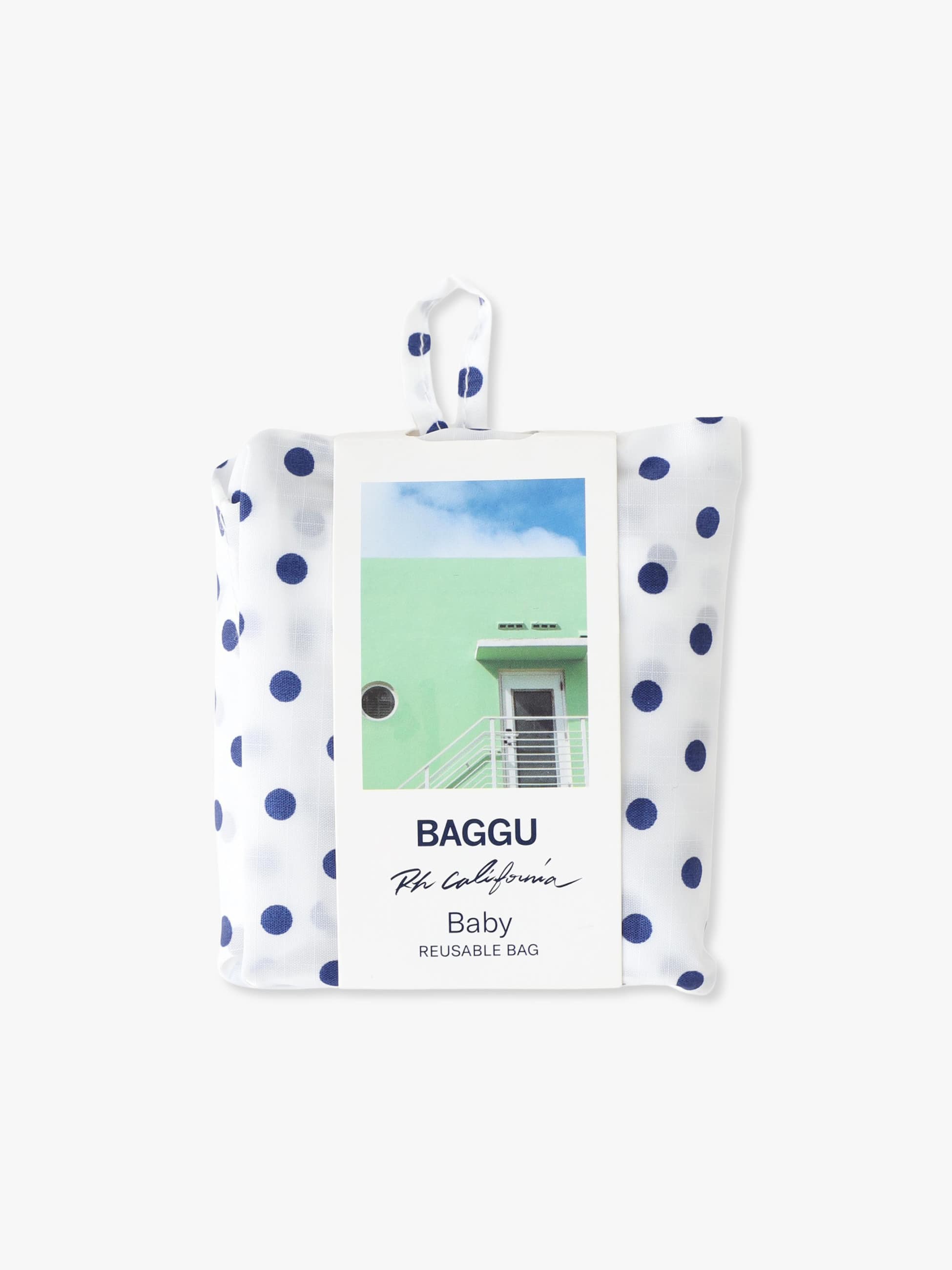 毎シーズンご好評いただいているBAGGUとロンハーマンのコラボレーションより、新シリーズが登場です。ドットの間隔やバランスにこだわったオリジナルデザインに仕上げました。ホワイトベースにネイビーのドットを効かせた爽やかなデザインが魅力で、最もコンパクトなベイビーサイズは、ちょっとしたお買い物や持ち運びにも便利で、必要な荷物をすっきりと収納できます。日常使いにはもちろん、ギフトにもおすすめです。