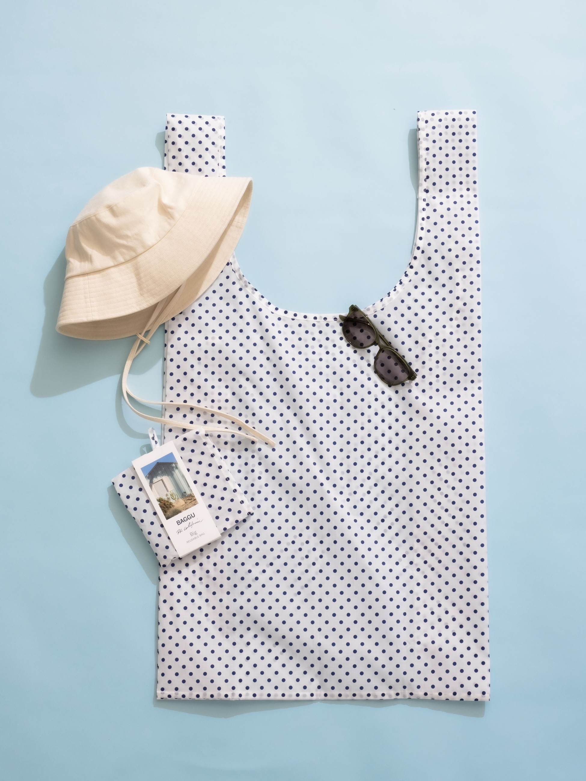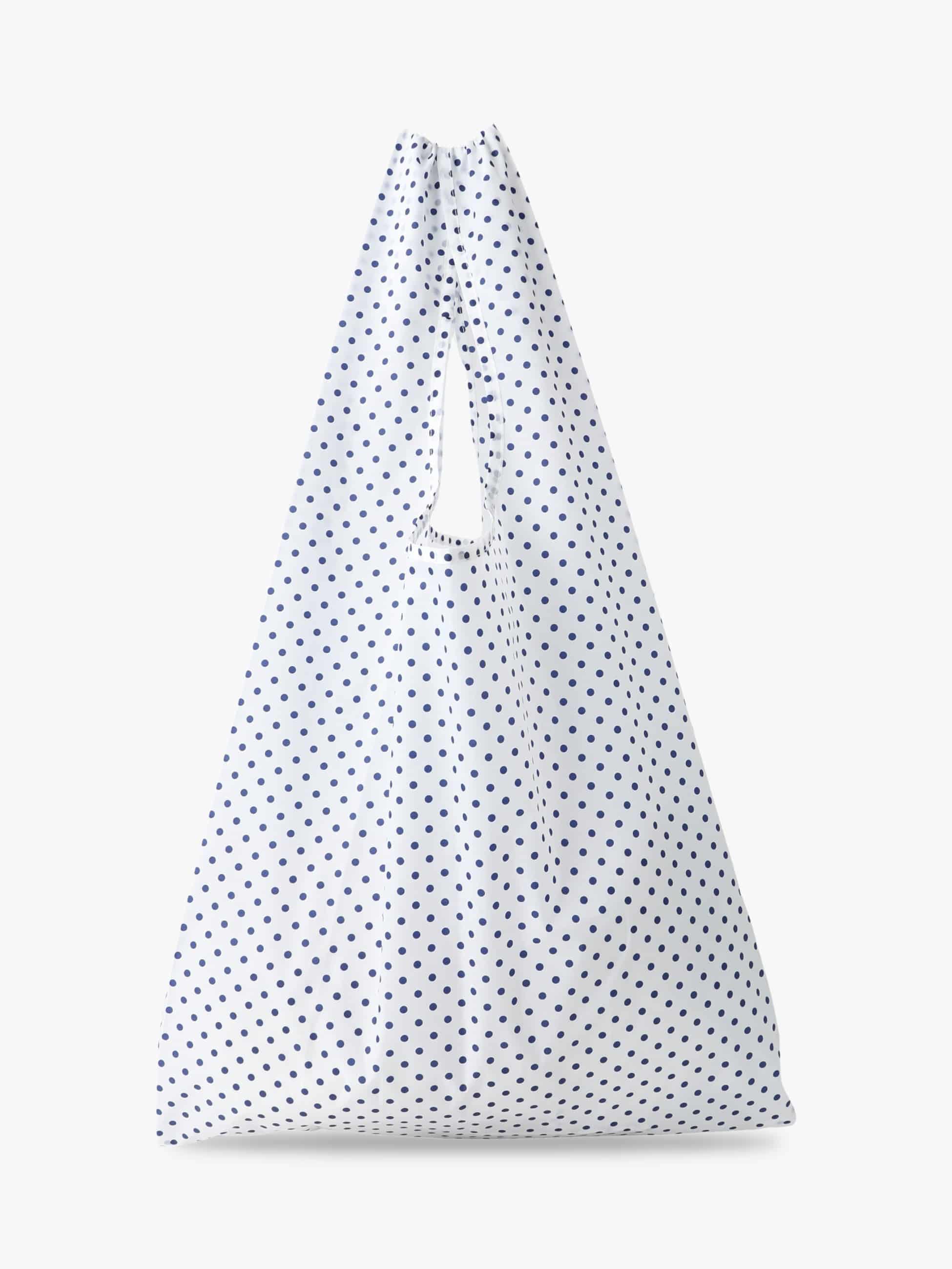 毎シーズンご好評いただいているBAGGUとロンハーマンのコラボレーションより、新シリーズが登場です。ドットの間隔やバランスにこだわったオリジナルデザインに仕上げました。ホワイトベースにネイビーのドットを効かせた爽やかなデザインが魅力で、たっぷりと収納できる大きめサイズは、旅行やレジャーなどさまざまなシーンで活躍します。