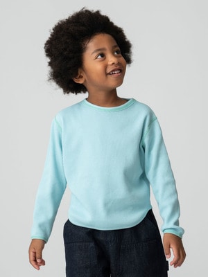オーガニック コットン ワッフルロングスリーブ ティー(ライトイエロー/ライトブルー/ネイビー/70-110cm)