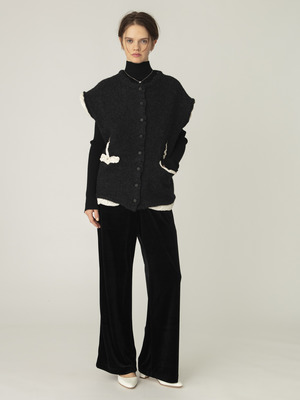 ベロア イージーパンツ(ブラック/グレージュ)
