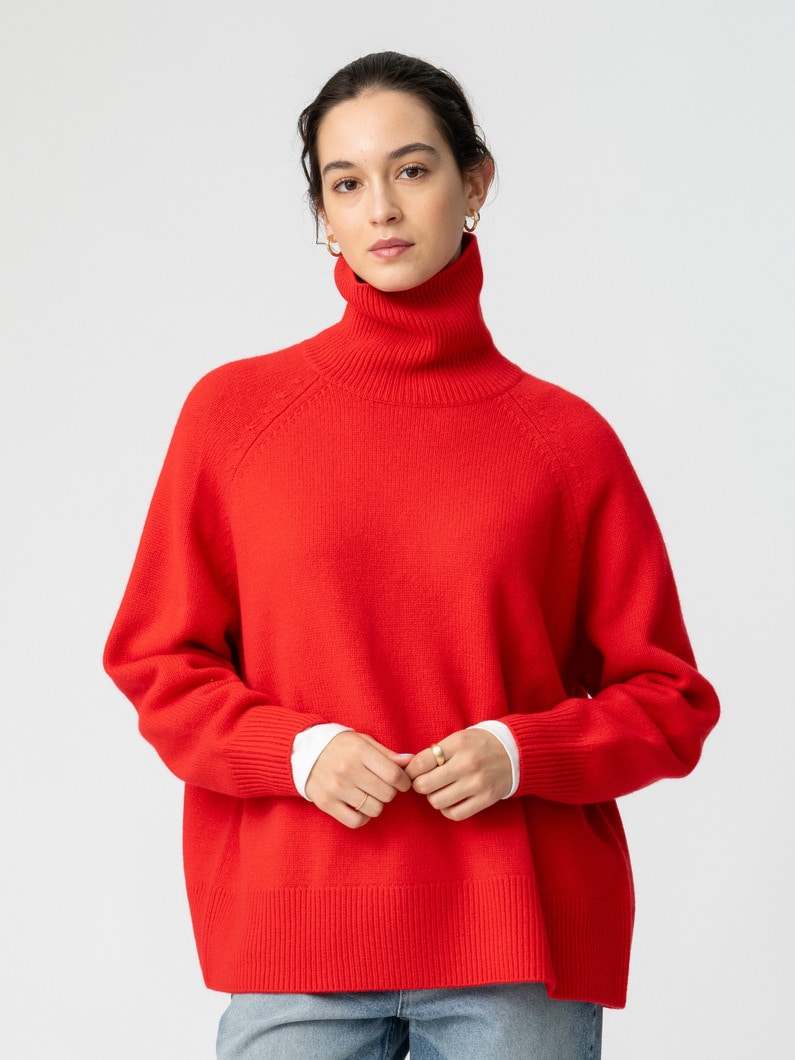 ミドルゲージ カシミア タートルネックプルオーバー(ライトグレー)