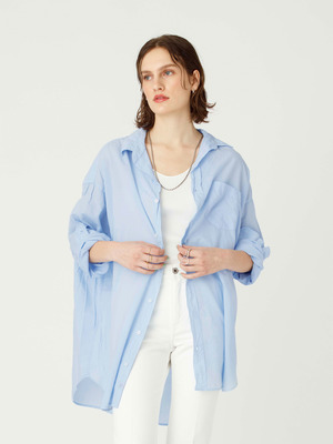 マッケンジー オーガニックコットン ボイル シャツ (ホワイト/ブルー)