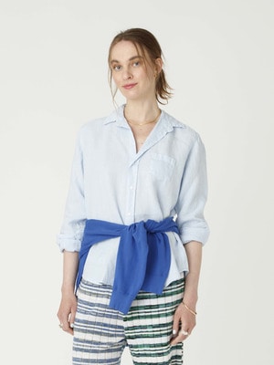 アイリーン ウォッシュド リネン シャツ(ホワイト/ネイビー/ライトブルー)