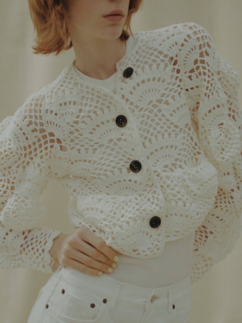 アンステイブル クロシェ ニット カーディガン(ホワイト)