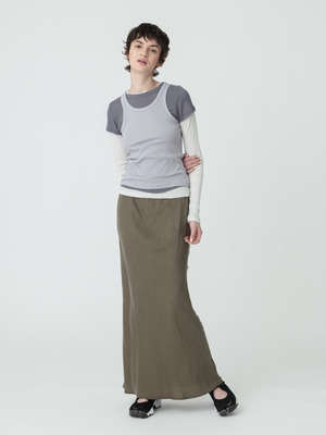 サテン マキシスカート(ベージュ/ブラック)