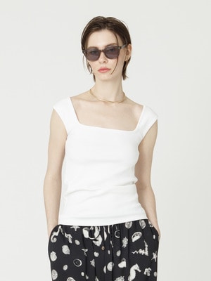 ベアリブ スリーブレス トップ(オフホワイト/ブラック/ブルー)