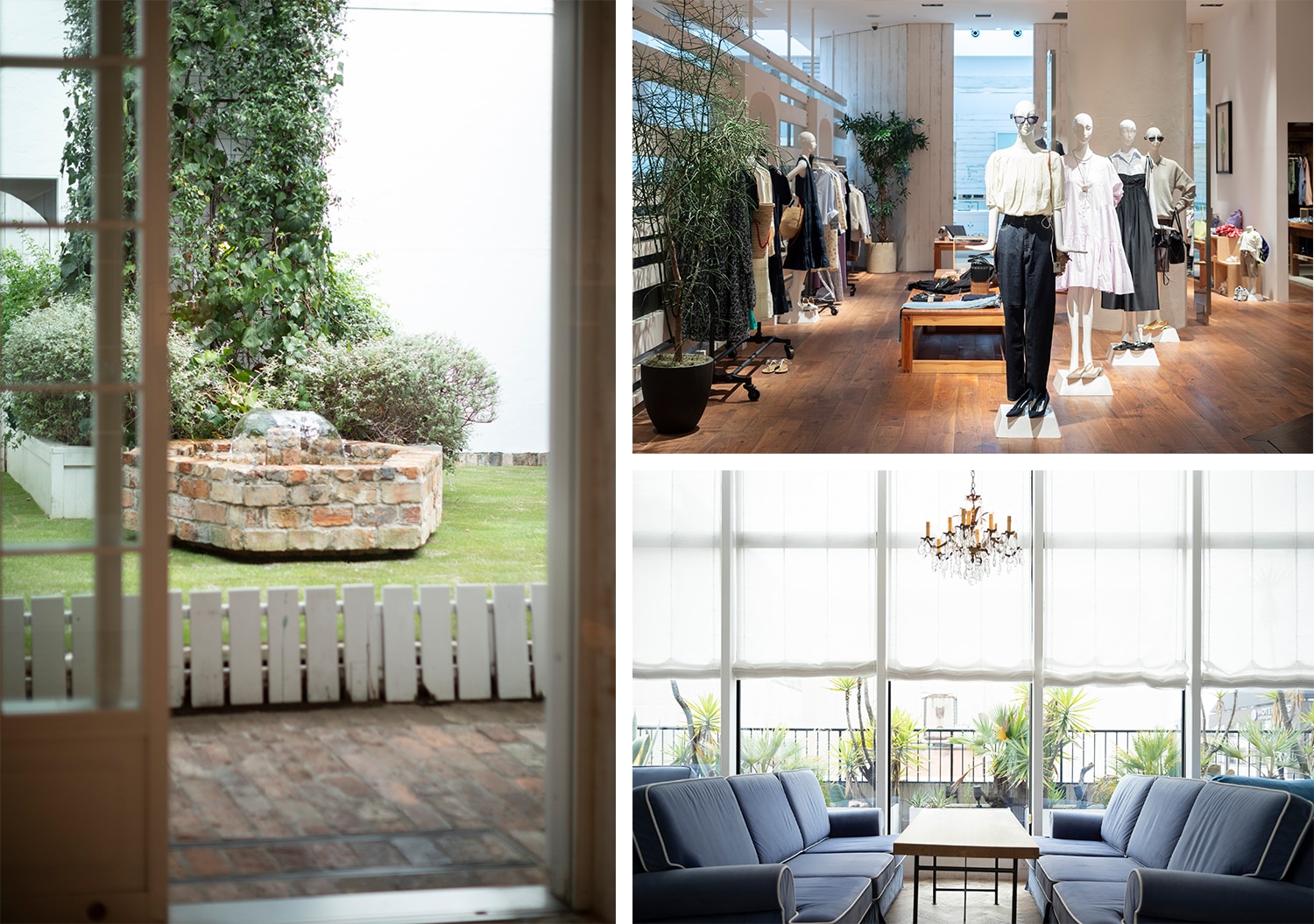 「ロンハーマン京都店」は、「京都BAL」の最上階のワンフロアを占める。緑や噴水がアクセントとなったリラックスできる空間。「街のオアシスのよう」と、口にするお客様も