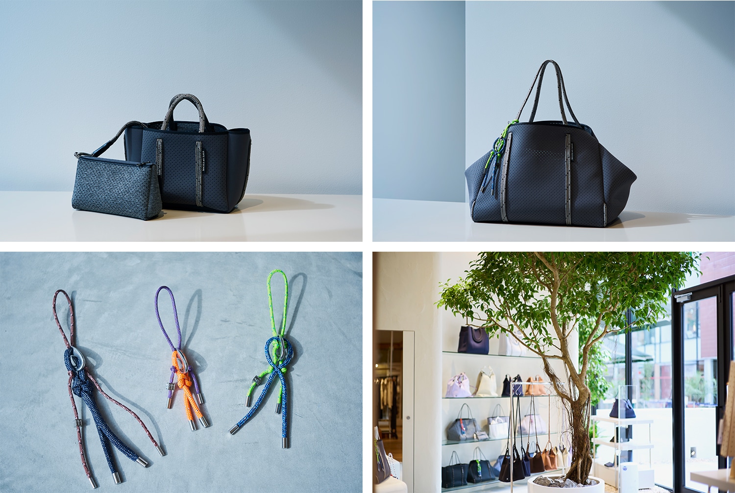 「私は西オーストラリアの出身で、海の側に住んでいたので常に自然に囲まれて育ちました。休日はいつも海の上、サーフィンを楽しんでいましたから。だから、ネオプレンでできたウエットスーツはとても身近な存在だったんです。20代でシドニーに移り住みましたが、海とともに暮らすことはいつも心の中にありました」。STATE OF ESCAPEのデザインを特徴づけている一つが、持ち手で使われているロープです。このユニークなアイデアもブリジットさんの暮らしから生まれました。「父はセーリングを楽しむ人でしたから、セーリングロープも常に身近にありました。バッグにセーリングロープを使うことは、一般的には思いつかないのでは」。STATE OF ESCAPEは、ブリジットさんの人生そのものといっていいかもしれません。