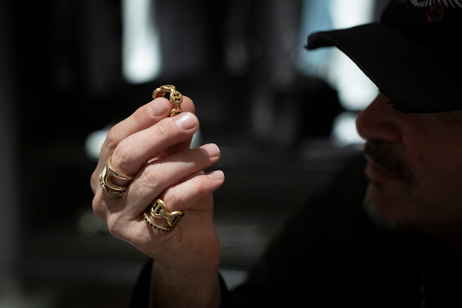 ブランドで初めて手がけたリングを見つめるロバートさん。「すべてはここから始まった」と感慨深げだった