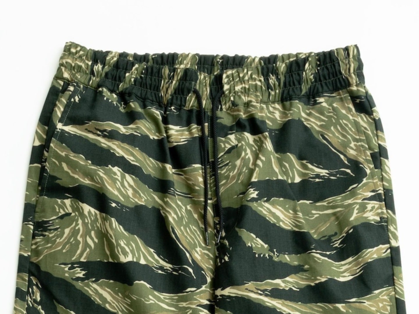 Ron Hermanの為だけに作られた今回のアイテムは、コットンのリップストップ素材。コットン100%で仕立てたライトオンスのパンツは軽くさらりとした質感で、蒸し暑い夏でも快適な履き心地の一本。摩擦や切り裂けに強い、格子状の独特な織り柄のリップストップを採用し、機能性にも優れたデザインに仕上げています。着回しのしやすいgrayとblackのベーシックなカラーに加え、夏の装いのアクセントとなるcamoの3色展開。適度なゆとりがあり、ウエストのドローコードでイージーに着こなせるフルレングスとショーツの2型をご用意しております。