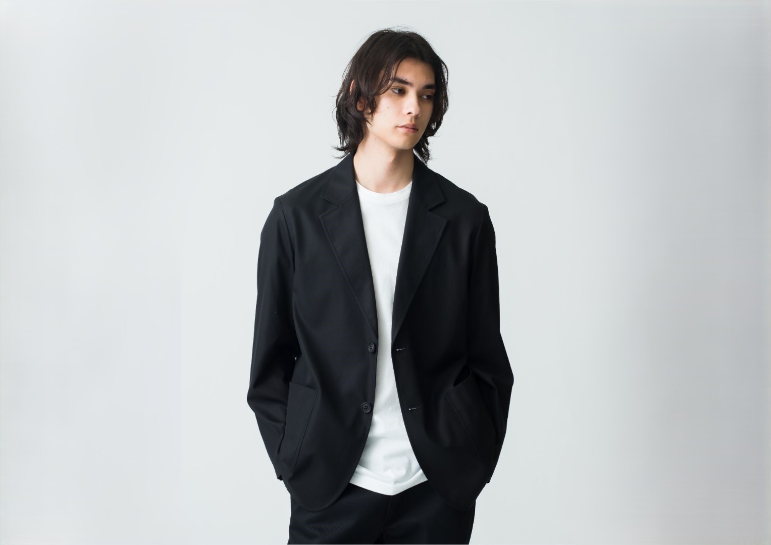 細番手のコットン糸を2本撚り合わせて、高密度に織り上げたギャバジン生地を使用したシリーズ。表面に加工を施した継続性のあるしなやかな風合いと生地本来のハリやコシは、ウールのような上品な表情と肌なじみの良さが特徴です。ジップアップジャケットは、程よくゆったりとしたボックスシルエットに着丈をやや短くしたフィットで、快適な着心地を実現しています。テーラードジャケットもウエストの絞りを少なくしたリラックスフィットで、ウエストにゴムとドローコードを配した同シリーズのフルレングスイージーパンツやショーツと合わせても着ていただける、ドレスアップとコンフォートを兼ね備えた幅広い時季で活躍するアイテムです。