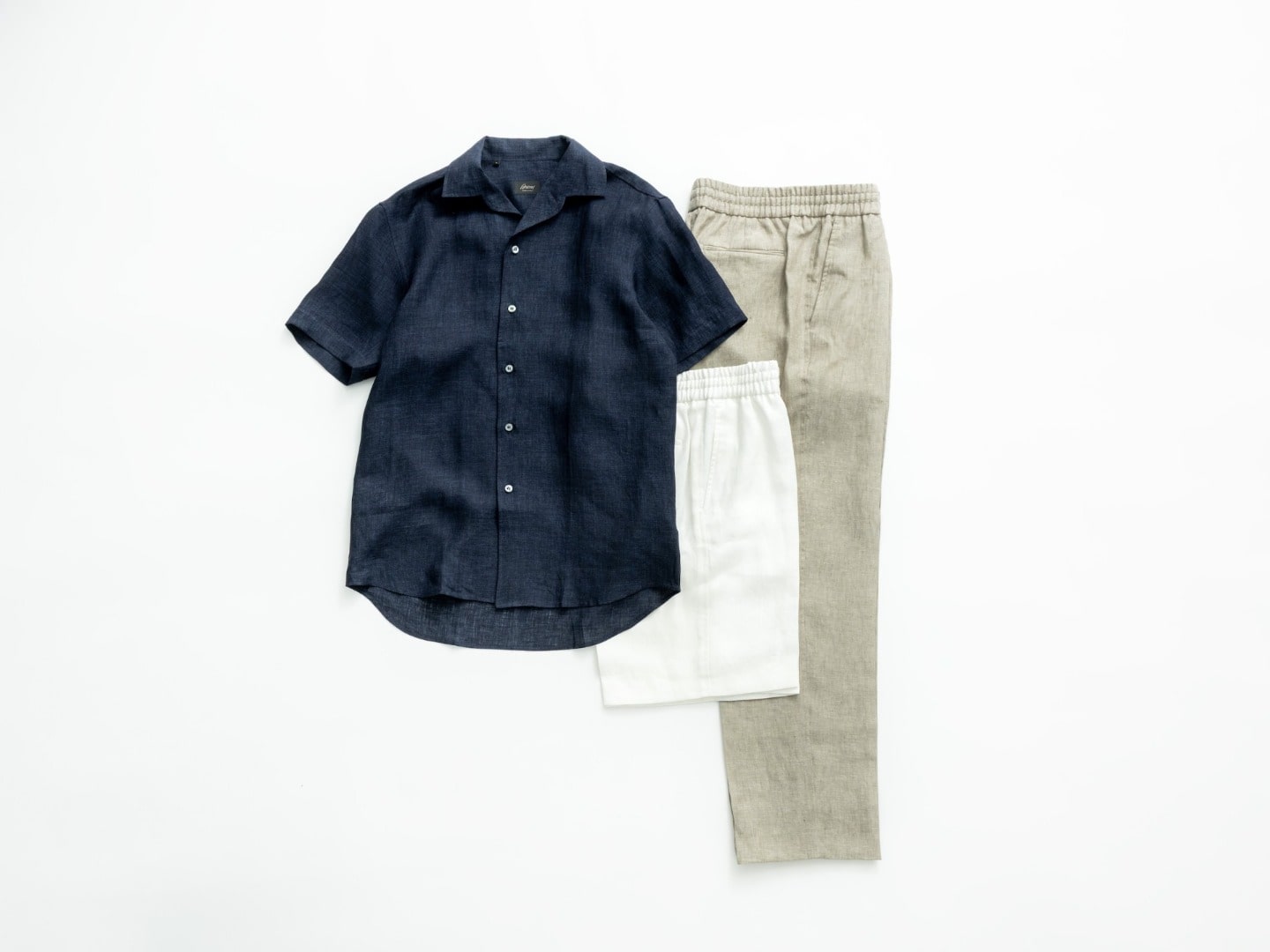 熟練の職人による卓越した技術で丁寧につくられたイタリア製でタイムレスなブリオーニの製品。今回はリゾートシーンに最適な、この上ない柔らかな手触りと快適な着心地が特徴であるBrioni のレジャーウェアから、リネン素材を使用したアイテムや上質なリラックスしたムードを感じていただけるドローストリングパンツ&ショーツ、ミリタリーシャツ、キャンプカラーシャツ、Essentialコレクションからはカットソーやシャツなどをご用意しております。