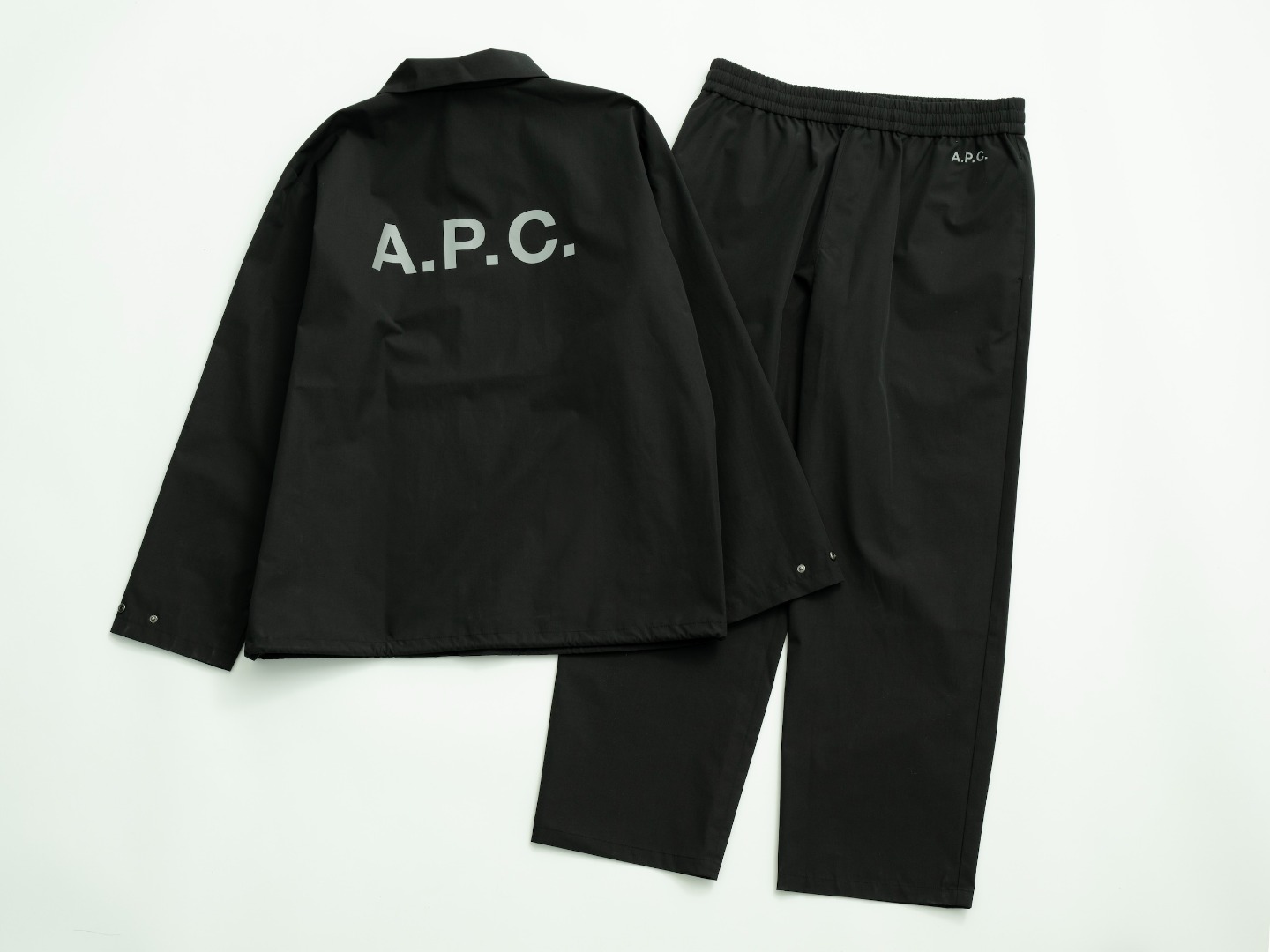 今回はシンプルで洗練された別注コーチジャケットとパンツが登場。ジャケットはA.P.C.で長年人気を誇る、ベースボールジャケットをインスピレーションにした一着。軽量でしなやかなポリエステル60%、コットン40%のテクニカルファブリックを使用し、春先から秋口まで長いシーズンに対応。ラージフィットのシルエットで、Tシャツの上からの軽い羽織りとして、またスウェットの上に重ねるライトアウターとして、幅広く活躍します。