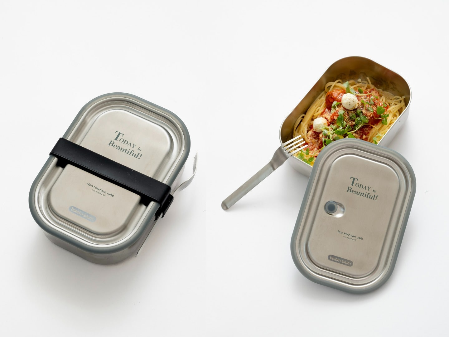 シンプルなデザインながらも様々なおかずや主菜を詰めて楽しむことができるステンレス製ランチボックス。日々繰り返し使うからこそ、シンプルで洗いやすくタフなものにこだわりました。また、オーブン調理用の器や冷蔵、冷凍の保存器としても使える多機能な部分も魅力のひとつです。蓋についているシリコンバルブで密閉できるので、食材の乾燥を防ぎ、汁漏れもしにくくなっています。さらに、専用フォークは付属のバンドで止めて収納ができます。