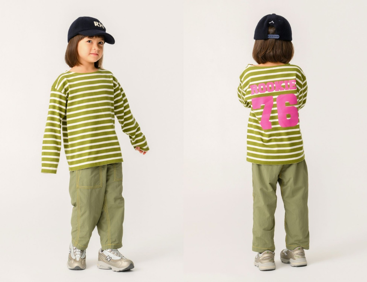 今回、ブランドを象徴するマリニエールボーダーのプルオーバーをベースにユニフォームからインスピレーションを得たデザインで登場。ロンハーマン創業の1976年にちなみ、「76」とこれからの未来をつくる子どもたち「ROOKIE」の文字をバックにプリントを施したスペシャルピースが完成しました。