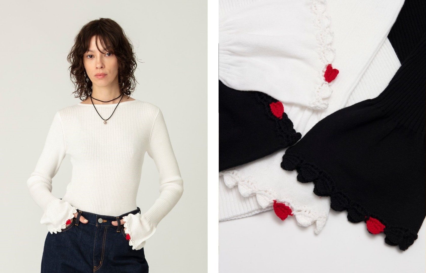 Heart Crochet Rib Pullover / White, Black ¥28,600