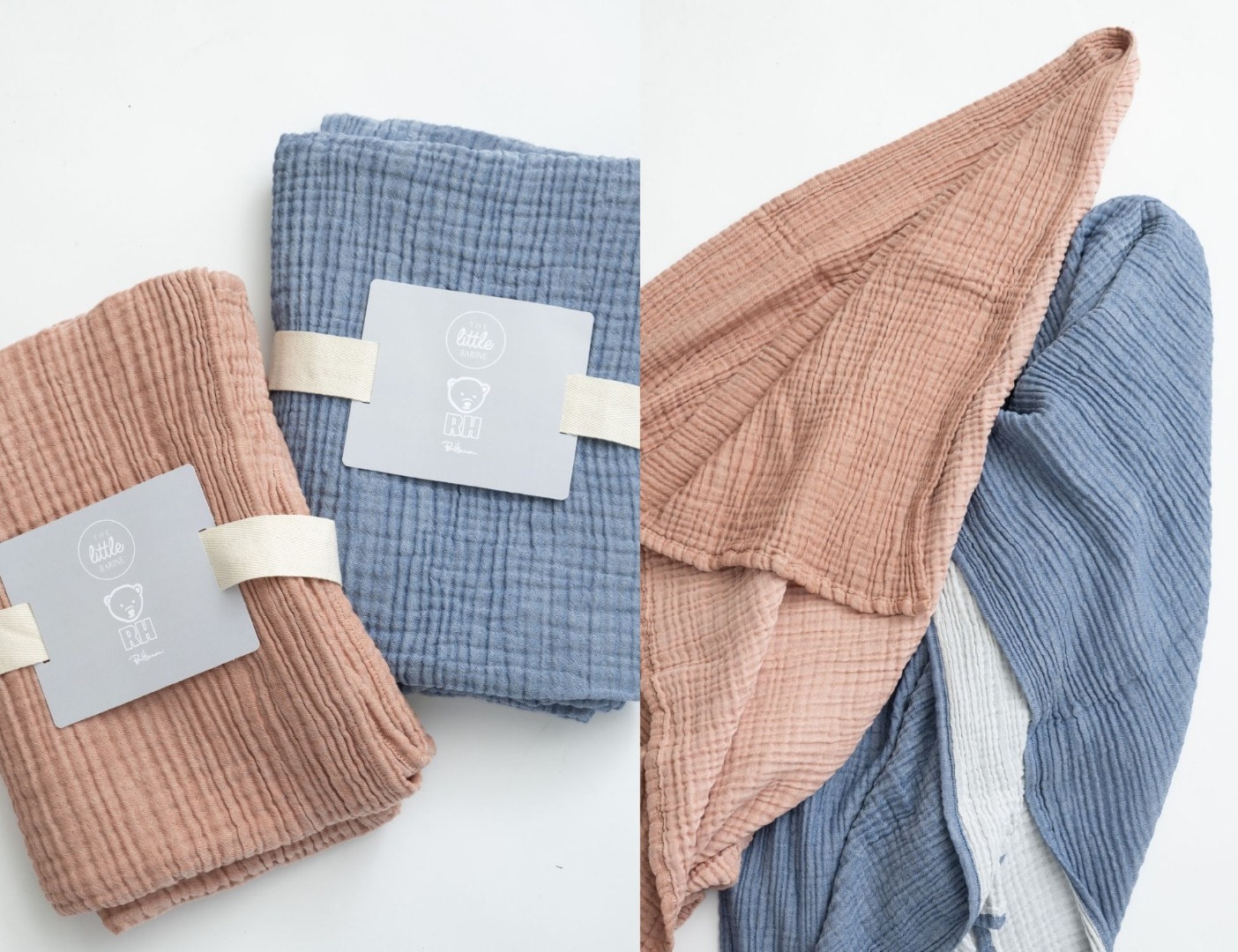 今ではロンハーマンキッズに欠かせないBARiNEのベビーブランケット。柔らかく、ふわふわとした肌触りのブランケットは老舗の織物ブランドならではの上質な仕上がりが毎年人気を集めています。今回、ロンハーマンキッズとして初めて、カラー別注のブランケットが登場。ガーゼ状の二重コットン生地を裏表異なるカラーを2色ずつセレクトしバイカラーの仕様に。ガーゼ状のコットン素材のため見た目以上にしっかりとしたつくりでボリュームもあるため、長く愛用していただけます。また、ベビーだけでなく大人も使える優しく落ち着いたカラーリングは、親子で使用していただけ、さらに出産祝いのギフトとしてもおすすめです。さらに、ロンハーマンキッズのロゴを施したダブルネームのパッケージがスペシャル感を演出します。