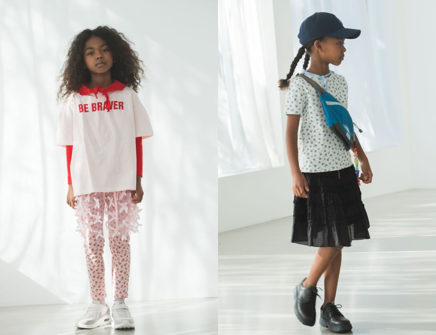 幸せの象徴でもあるピースマークやハチドリ、そして花々をモチーフにしたデザインで、お花の影にそっと身を潜めるハチドリや、風に揺れるピースマーク、小さな楽園のような情景が描かれています。素材には、柔らかな生地を使用し、伸縮性もあり心地良いフィット感で、脚の動きにしなやかに寄り添います。軽やかで快適な履き心地は、元気に動くキッズにもぴったり。レギンスは、Tシャツやスウェット合わせはもちろん、スカートの下にレイヤードしたスタイリングも叶えてくれます。どんな日常の瞬間にも、自由と遊び心をそっと添えてくれるシリーズです。