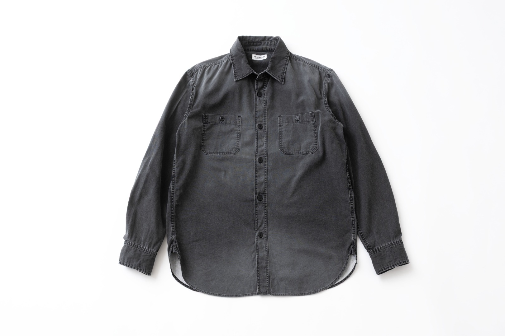 今回登場するアイテムは、ブラックの顔料プリントを施した薄手のダック生地を使用し、加工には過度なコスリを加えず、洗いを主体にわずかな表情付けにとどめることで、奥行きのある風合いに仕上げています。