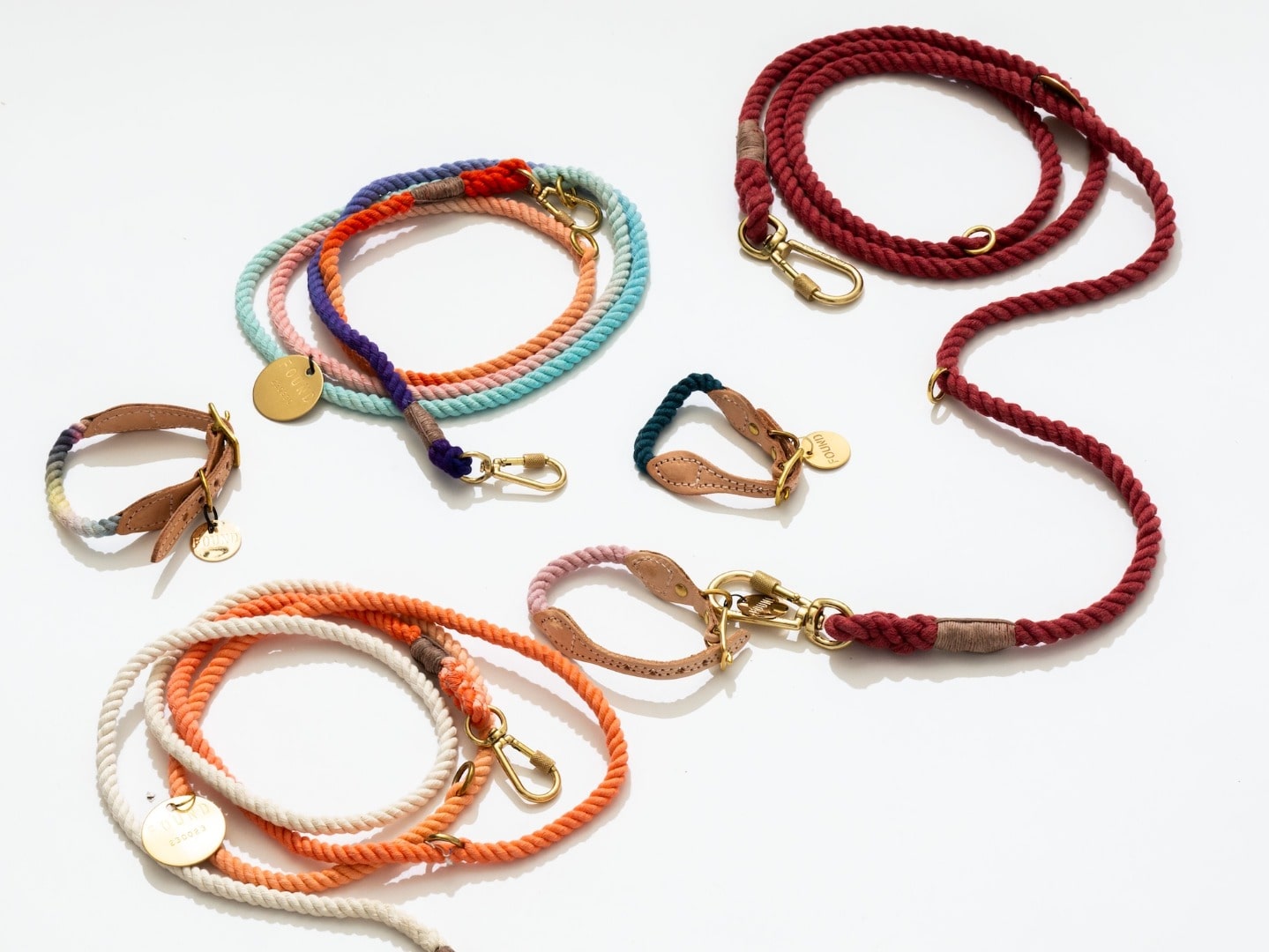 今回のイベントでは、春夏らしいカラフルなリードやハーネス、カラー、サーマルTシャツが一堂に揃います。ニューヨークのスタジオで手染め・手縫いされたコットン製マリンロープのハンズフリーリードは、長さ調整が可能で、航海用ロープと金具を使用した高い耐久性が魅力。肩掛けや腰巻きなど、多様なスタイルでお使いいただけます。また、「FOUND」タグに刻印されたシリアルナンバーには、ペットが唯一無二の存在であること、そして保護動物支援への想いが込められています。